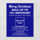 Feliz Navidad! Una de las fiestas más celebradas del año. También es una de las mejores temporadas para promocionar su negocio o promocionar su marca a clientes o clientes. Volante de personalizable con venta de Navidades, su nombre comercial y otra información de su negocio, un material de marketing que puede utilizar para atraer a más clientes. Personalizar y repártelo para atraer a más clientes a que compren sus productos o clientes para que les gusten sus servicios. Los colores de diseño son textos en azul claro y blanco sobre fondo azul. Para personalizar de este folleto, especifique el porcentaje de descuento que ofrecerá y las fechas de venta. Sube también el logotipo de tu empresa, escribe tu nombre de negocio, dirección, número de teléfono, correo electrónico y sitio web o tu página de red social de tu empresa. Por favor, compruebe la apariencia en los lados frontal y posterior después de teclear textos y cargar el logotipo. Si la apariencia le resulta agradable, puede realizar su pedido ahora. Si necesita redimensionar y mover los textos y el logotipo para que encajen en este volante o en el tamaño que elija, por favor cambie la herramienta de diseño. También puede cambiar el color de fondo, el color de fuente y el estilo de fuente en la herramienta de diseño. Feliz Navidad! Te deseo más ventas esta fiesta.