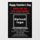 ¡Feliz Día de San Valentín! Un hermoso día festivo para celebrar en febrero y también para promocionar los productos de su negocio y promocionar el nombre de su marca. Pegatina de ventana de color negro personalizable con Venta de San Valentín, el nombre de su negocio y otra información. Pegatina de ventana que puede utilizar como material de marketing para atraer a más clientes. Personalícela y muéstrela para convencer a más clientes de que compren sus productos o a que les gusten sus servicios. Los contenidos son un saludo de Feliz Día de San Valentín, textos de venta con porcentaje de descuento que ofrecerá, fechas de venta, nombre del negocio, logotipo, dirección, número de teléfono, correo electrónico y sitio web o página de redes sociales de su negocio. Por favor, compruebe la apariencia después de subir el logotipo y escribir los textos. Si la apariencia le resulta agradable, puede realizar su pedido ahora. Si necesita cambiar el tamaño y mover el logotipo y los textos para que se ajusten a esta pegatina de ventana o al tamaño y forma que elija, por favor, cambie en la herramienta de diseño. También puede cambiar el color de fondo, el color de la letra y el estilo de letra en