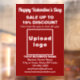 ¡Feliz Día de San Valentín! Un hermoso día festivo para celebrar en febrero y también para promocionar los productos de su negocio y promocionar el nombre de su marca. Pegatina de ventana de color rojo personalizable con Venta de San Valentín, el nombre de su empresa y otra información. Pegatina de ventana que puede utilizar como material de marketing para atraer a más clientes. Personalícela y muéstrela para convencer a más clientes de que compren sus productos o a que les gusten sus servicios. Los contenidos son un saludo de Feliz Día de San Valentín, textos de venta con porcentaje de descuento que ofrecerá, fechas de venta, nombre de su empresa, logotipo, dirección, número de teléfono, correo electrónico y sitio web o página de redes sociales de su empresa. Por favor, compruebe la apariencia después de subir el logotipo y escribir los textos. Si la apariencia le resulta agradable, puede realizar su pedido ahora. Si necesita cambiar el tamaño y mover el logotipo y los textos para que se ajusten a esta pegatina de ventana o al tamaño y forma que elija, por favor, cambie en la herramienta de diseño. También puede cambiar el color de fondo, el color de la fuente y el estilo de fuente