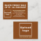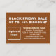 Atraer más clientes ofreciéndoles descuentos este Black Friday, una de las estrategias de marketing para tener más clientes. Tarjeta de gabinete de personalizable que puede utilizar para atraer a más clientes a comprar sus productos o clientes para que les gusten sus servicios. Tarjeta de inscripción con su marca comercial como material de marketing que también puede utilizar para crear conciencia de marca. Los colores de diseño son textos marrones y blancos sobre fondo marrón. Para personalizar de esta tarjeta de gabinete, especifique el porcentaje de descuento que va a ofrecer, cargue el logotipo de su empresa, escriba su nombre de negocio, dirección, número de teléfono, correo electrónico y sitio web o su página de red social comercial. Por favor, compruebe la apariencia en los lados delantero y trasero después de cargar el logotipo y escribir textos. Si la apariencia le resulta agradable, puede realizar su pedido ahora. Si necesita cambiar el tamaño y mover el logotipo y los textos para que encajen en esta tarjeta de gabinete, cambie la herramienta de diseño. También puede cambiar el color de fondo, el color de fuente y el estilo de fuente en la herramienta de diseño. Te deseo más ventas este Viernes Negro.