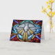 Tarjeta en blanco de la ventana de vidrio manchado.