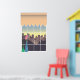 La falsa ventana en forma de poster es una buena forma de iluminar la habitación. Se trata de un muro de estilo personalizado con vistas a la ciudad.