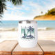 Verano de playa 2024. Fiesta de verano. Blue Green Beach Scene con Surf Board & Palm Tree.