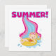 Un bonito diseño para el verano, con un chica de pelo rubio vestido con traje de baño y anillo que baja por el tobogán de agua y un texto rosa y azul caliente que lee VERANO! Camisetas de verano, bodysuit, bibs, tazas, tarjetas, bolsas, pegatinas, keepsakes, almohadas y mucho más.
