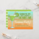 Los colores brillantes del atardecer resaltan este diseño moderno, perfecto para reuniones de verano, cumpleaños "21", despedidas de soltera o fiestas. El diseño presenta una ilustración gráfica de un vaso de margarita lleno de un delicioso cóctel y adornado con una rodaja de limón. El fondo es un gradiente divertido que pasa de aqua brillante a naranja atardecer. Para más diversión, el arte tiene las palabras "Exprime un limón más, bebé" en tonos de verde limón. Personalice la invitación con la información de su evento utilizando las plantillas fáciles proporcionadas. El lado reverso tiene más plantillas de texto para agregar más detalles del evento y está adornado con un patrón de rayas anchas en tonos de verde limón.
