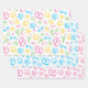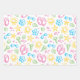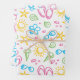 Este juego de regalos incluye una divertida impresión que dice verano. Realizado en tonos vivos de verde, amarillo, rosa y turquesa, la impresión está compuesta por sol, helados, chanclas, gafas de sol, conchas de mar, estrellas y piedras de playa sobre un fondo blanco. Una hoja en rosa, azul y múltiple.