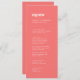 Esta retro carta de boda rosado caliente de verano es perfecta para un boda colorido. El exclusivo diseño vintage moderno presenta una vibrante tipografía en blanco y rosado con divertidos tonos de groovy. Este menú se puede utilizar para la recepción de bodas, la cena de ensayo o cualquier evento.