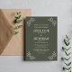 Esta magníficamente simple pero elegante invitación a la boda incluye un marco de hojas dibujadas que bordean el texto de la invitación. Por favor, contáctame si quieres ayudar a personalizar la parte de texto.