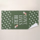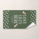 Moderno y elegante conjunto de toallas de baño VERDE FOREST, diseñado con LOVE LIVES AQUÍ en tipografía blanca y referencia de las escrituras de PERSONALIZABLE que puedes personalizar añadiendo tu nombre (familiar). 1 Juan 4:16 dice: "Dios es amor, y el que permanece enamorado permanece en Dios, y Dios en él". Esquema de color marino de FOREST VERDE y BLANCO, con gráficos opcionales de doble corazón, que puede borrar si lo desea. Elementos y otros colores disponibles.