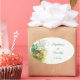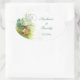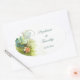 Este elegante pegatina cuadrado redondeado de bodas vintage presenta un diseño floral de color azul verde azulado oscuro, melocotón y acuarela verde a la izquierda. En el fondo, el azul y el verde están perturbados. A la derecha, puedes personalizar fácilmente los nombres de la novia y del novio junto con la fecha de la ceremonia del boda. Esto podría usarse como pegatina de favores o como sello para sobres.