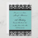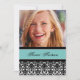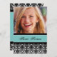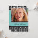 Personalizado Photo 16th invitaciones a la fiesta de cumpleaños en un elegante estilo negro y azul turquesa clásico damasco floral. Añade tu nombre, foto y detalles del fiesta para una invitación única y elegante a la fiesta de 16 años.