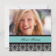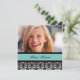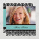 Personalizado Photo 16th Birthday invitaciones a la fiesta en elegantes damascos florales clásicos de color negro y azul turquesa. Añade tu nombre, foto y detalles del fiesta para una invitación a una fiesta de 16 cumpleaños única y elegante.