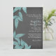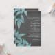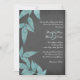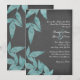Esta hermosa invitación a la boda presenta una vieja textura de papel vintage con imágenes de hojas de otoño de color azul verde azulado sobre un elegante fondo gris. Excelente para cualquier novia que busque un clásico estilo vintage para su boda otoño