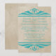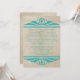Elegante y moda Elegante Invitación a la Boda Deco, con un remolino de estilo Art Déco que florece con las fronteras en turquesa y un fondo texturado vintage en un beige suave. Esta invitación tiene un encanto rústico y mantiene un agradable estilo sofisticado. Ideal para un boda con temática vintage de los años 20. Fácil de personalizar, simplemente agregue los detalles de su boda en los campos de texto proporcionados. Haga clic en "Personalizar" para buscar más opciones de personalización, como cambiar fuentes o colores de texto.