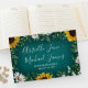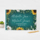 El verde azulado libro de huéspedes Sunflower Rustic Country Wedding, decorado con un verde azulado o turquesa fondo de madera de granero adornado con daisies acuarelas, girasoles, vegetación, aliento de bebé y lirio del valle