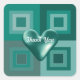 Un diseño de bonito en tonos verde azulados. Cuadrados y un corazón verde azulado acentúa las palabras gracias.