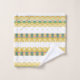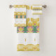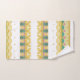Rosa, verde, amarillo y blanco, toallas de baño con motivos de bonito. El fondo blanco puede cambiarse a cualquier color.