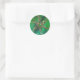 Un trabajo abstracto en verde brillante y cobre. Una joya verde clara está rodeada de hojas de cobre de césped acentuadas con espumosas esmeraldas y estallidos naranjas. Los fractales ondulados, curvados en el fondo aparecen en un fondo verde, marrón y naranja más profundo dentro del filigree de cobre del motivo de la hoja.