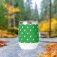 Un diseño elegante y festivo con puntos purpurinas verdes y dorados.