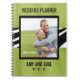 Cuaderno del planificador del boda con la foto de novia y del novio, el modelo de la cebra y el fondo verde. El personalizar con su foto, la novia y los nombres y el boda del novio fechan. Gran cuaderno espiral de encargo personalizado para planear su boda y guardar notas.