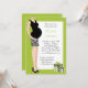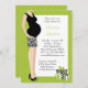 Esta invitación verde unisex de la fiesta de bienvenida al bebé ofrece a una mamá embarazada para llevar una falda blanco y negro del estampado de zebra con los regalos del lunar.
