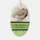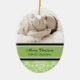 Personalizable del ornamento de la abuela de las Felices Navidad con su propia foto de familia en el verde elegante, modelo floral clásico blanco y negro del damasco. Un regalo elegante del navidad para la abuela estas vacaciones.