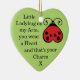 Ornamento colgante del pequeño del amor del insecto diseño en forma de corazón dulce estupendo de la mariquita. Ofreciendo la cita del poema que lee: Pequeña mariquita en mi brazo, usted lleva un corazón y ése es su encanto X. Vea hacer juego diseños en la categoría de hadas de la mariquita de la tienda de hadas de Marie: www.zazzle.com/fairymarie*