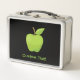 manzana verde con icono de hoja. Color de fondo personalizado. Texto personalizado en ambos lados.