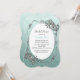 Invitación nupcial elegante de la ducha, hecha en un grabado en relieve de la verde menta que mira el modelo del damasco, con un marco floral del tono plateado decorativo, alrededor del área de texto oval blanca. Personalice todo el texto para adaptarse a sus necesidades del acontecimiento. Eligió el de papel de tarjetas usted quieren y la forma de la invitación que usted tiene gusto de mejor.