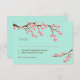 Lindas flores de cerezo rosadas y pajaritos adorables en un fondo verde menta adornan este sencillo conjunto de invitaciones de boda modernas. Este diseño es perfecto para bodas de jardín con tema asiático.