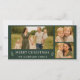 Celebre la temporada con esta elegante tarjeta de Navidad de color verde oscuro. El diseño panorámico de 8×4 presenta tres fotos familiares, junto con un saludo atemporal de “Feliz Navidad” en texto suave marfil y acentuado por delicados ramitos botánicos. El reverso continúa el aspecto con un patrón de follaje coincidente, lo que da al diseño un acabado pulido y sofisticado. Perfecto para familias que aman un estilo clásico y refinado que nunca pasa de moda.