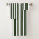 El conjunto de toallas de baño es de rayas blancas y verdes.