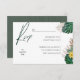Haz que la planificación de tu boda sea más suave y elegante con esta tarjeta de respuesta RSVP elegante que presenta un exuberante follaje tropical y tipografía moderna y limpia. Diseñada con un fondo blanco minimalista y acentos botánicos en verde salvia, añade un toque de belleza natural a tu suite de papelería de boda.