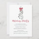 Invitación de fiesta de vacaciones con un brote de follaje vacacional en verde sabio atado con un arco rojo contra un fondo blanco con un texto rojo de "fiesta de fiesta" con una letra moderna.