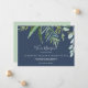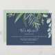 Estas tarjetas de invitación de elopement marino de vegetación estival tienen un elegante diseño de verano. El diseño botánico presenta una disposición exuberante de eucalipto de acuarela pintada, vegetación y hojas verdes sobre un fondo azul marino. Personalice la tarjeta con los detalles de su matrimonio y utilice la sección de plantillas de la parte posterior para obtener información sobre la recepción, para anunciar un cambio de dirección o para cualquier otro detalle que desee compartir.
