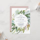 Este verano verde rosa todo en una sola invitación a la boda es perfecto para un elegante boda de verano. El diseño botánico presenta una disposición exuberante de eucalipto de acuarela pintada, vegetación y hojas verdes con sutiles brotes de flores rosa rubor. Guarde el papel incluyendo los detalles en la parte posterior de la invitación a la boda en lugar de en una tarjeta separada. Incluya también la información de RSVP si su invitado responderá electrónicamente (opcional). Para este diseño sin detalles en la parte posterior, consulte este listado: https://www.zazzle.com/256702897711164943