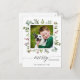 Envíe vítores de vacaciones a su familia y amigos. Esta postal vacacional presenta bayas pintadas de color rojo, ramas de pino, eucalipto y hojas verdes con las palabras "Feliz Navidad". Personalizar esto cambiando la imagen con tu propia foto y texto.