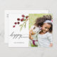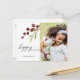 Esta postal con fotos de las berries rojas de color de agua pintadas y una rama de pino con las palabras "Felices Fiestas" Envíe vítores de vacaciones a su familia y amigos.