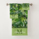 Modernas hojas y palmas tropicales monogramadas, diseño de toallas de baño de baño por Sandy Closs