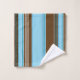 Estas toallas de baño coloridas tienen rayas verticales azules claras y marrones.