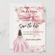 Vestido de arco rosado Quinceanera Guardar tarjeta