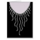 Las joyas elegantes y el collar de zambullidos hacen que estas tarjetas y sellos tengan un aspecto único. Creados a partir de fotos de joyas reales e incorporados en un ilustracion de un vestido negro y un collar de noche, son muy llamativos. Plata, oro, diamantes de imitación de colores y un diseño intrincado hacen que estas joyas destaquen. No es tu corrida de las invitaciones a los molinos y tarjetas de notas, genial para las damas que son maquilladores o asesores de imagen, mujeres que aman vestirse y salir por una noche en la ciudad.