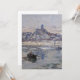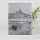 Imagen invernal del pescador en el río con el pueblo y la torre al fondo. Pintura única para enviar como saludo de vacaciones. Fina arte del artista francés Claude Monet.
