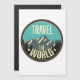 Viaje con el logo retro del mundo.