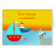 Bon Voyage a una abuela / abuela, tarjeta de saludo de papel con velero, remolcador, puesta de sol, pelícanos y un pez. Un par de pelícanos observan los barcos y un pez en el agua. Envíenles esta tarjeta brillante y colorida para desearles lo mejor en su viaje. Arte, imagen y verso copyright © Shoaff Ballanger Studios.