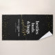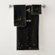 Crea tu propio conjunto de toallas personalizadas divertidas para el viaje de glamping de chicas, para que todas tus amigas tengan un recuerdo coordinado que sea útil mientras acampan con nuestra cita divertida "besties buds & bugs" en acentos de estrellas brillantes negras, blancas y doradas con un nombre de letra elegante, ubicación de destino personalizada y año impreso en la toalla de baño, y las iniciales del monograma en la toalla de manos y la toallita. Puedes cambiar los colores de fondo de cada artículo para que cada persona tenga un color diferente y no se mezclen en el campamento, simplemente haz clic para usar la herramienta de edición de plantillas de diseño.