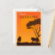 ¡A cualquiera le encantaría recibir esta tarjeta postal de viaje con un ilustracion retro de leones en Tanzania, África y promocionar el turismo africano!