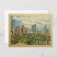 Diseño de Denver Colorado en estilo Viaje Vintage con una divertida escena en el centro de la ciudad.