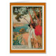 El poster clásico del viaje del vintage publicó por el viaje francés de la publicidad de la compañía del ferrocarril de PLM a Antibes en tren expreso por día o noche. Muestra a una señora de moda con su perro que mira hacia fuera sobre la ciudad.