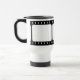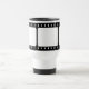 Abrigos tradicionales blancos y negros de la tira de la película alrededor inconsútil en este diseño de encargo de la taza. Muchos asaltan estilos y los colores están disponibles. La taza blanca se muestra la mirada fresca del viaje del acero inoxidable.